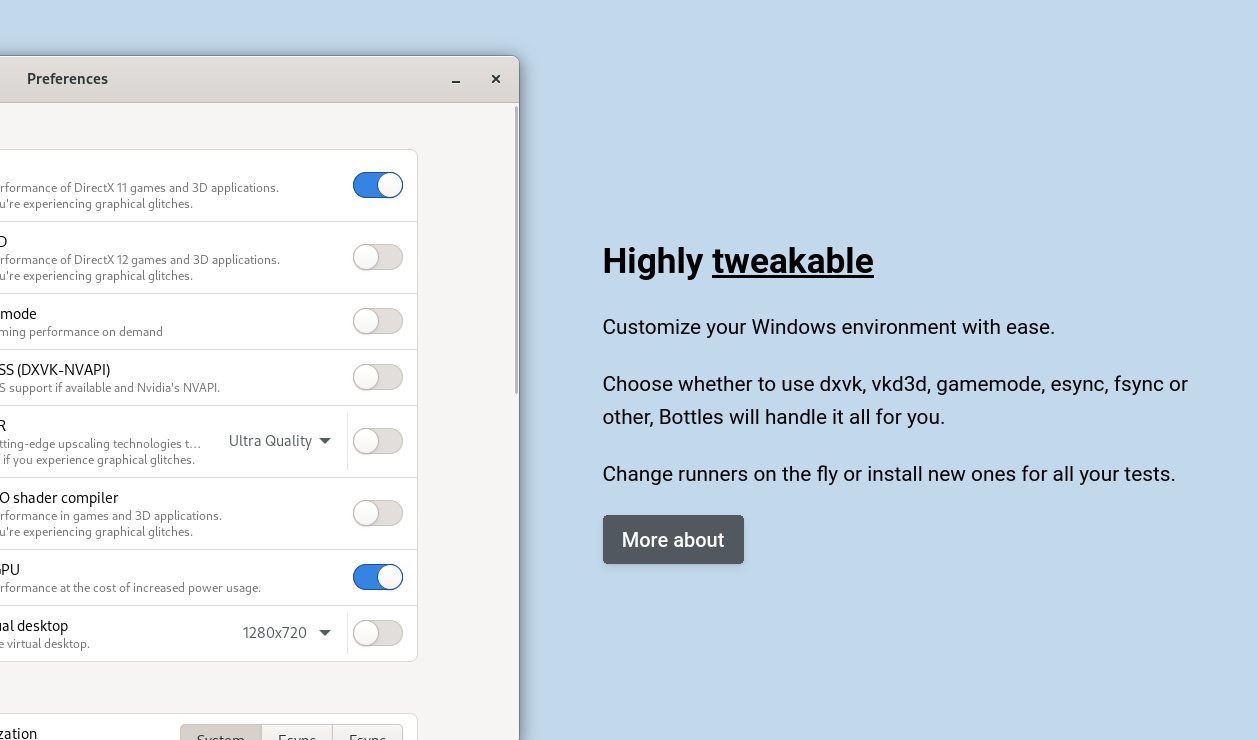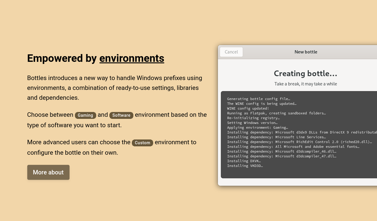 Today these environments are even more powerful and are not limited to preconfiguring DXVK, VKD3D and other bottle settings, but now also install dependencies on their own to drastically increase compatibility with Windows software.