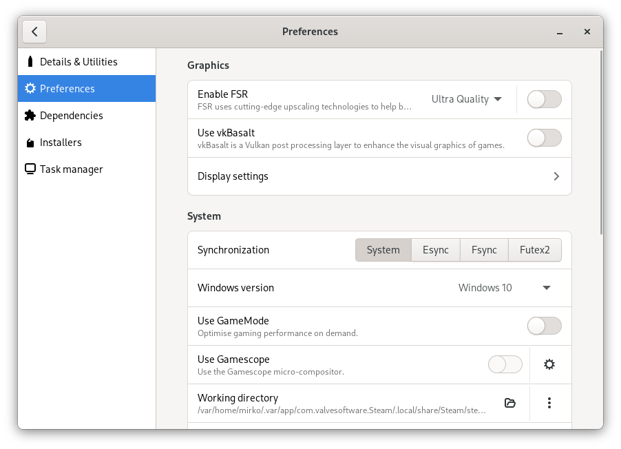 - Support for Steam runtimes (soldier, scout); if enabled, bottles with Proton use soldier while other runners use scout