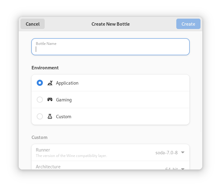 - Runners are now sorted according to a priority list. From the highest to the lowest priority: Soda, Caffe, Vaniglia, Lutris, and then the rest. Whenever you want to create a new bottle, or change the runner of an existing runner, everything will be displayed in order.